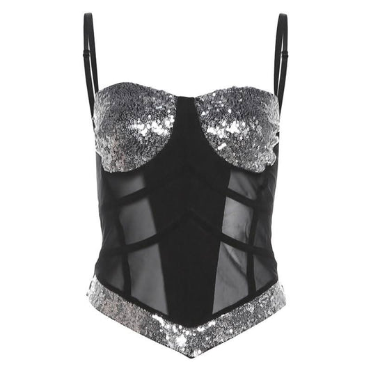 Glitter sweetheart neck corset cami bodysuit