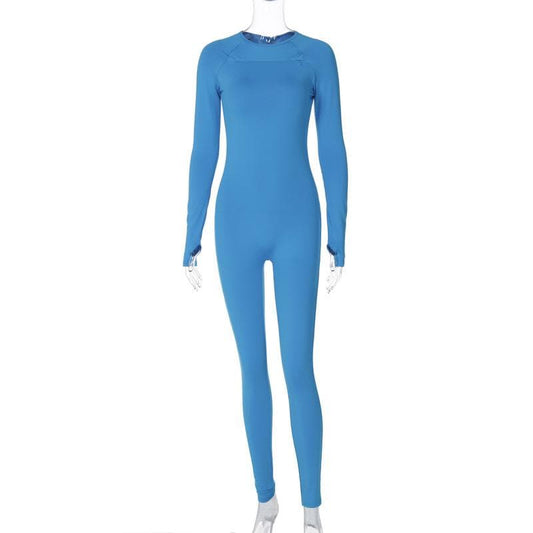 Gloves long sleeve mesh patchwork solid zip-up jumpsuit