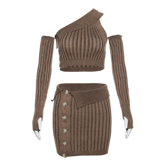 Gloves one shoulder high slit self tie maxi skirt set-final-sale