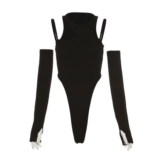 Gloves mesh corset off shoulder hollow out long sleeve halter cut out mini dress
