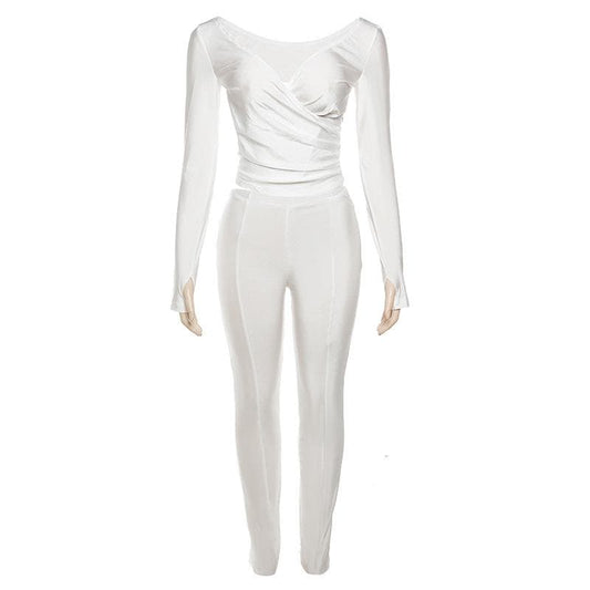 Gold Coast Long Sleeve V Neck Top Slit Skirt Set