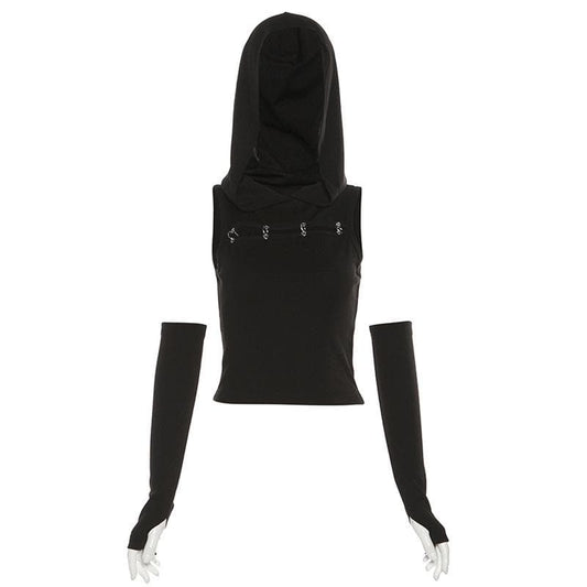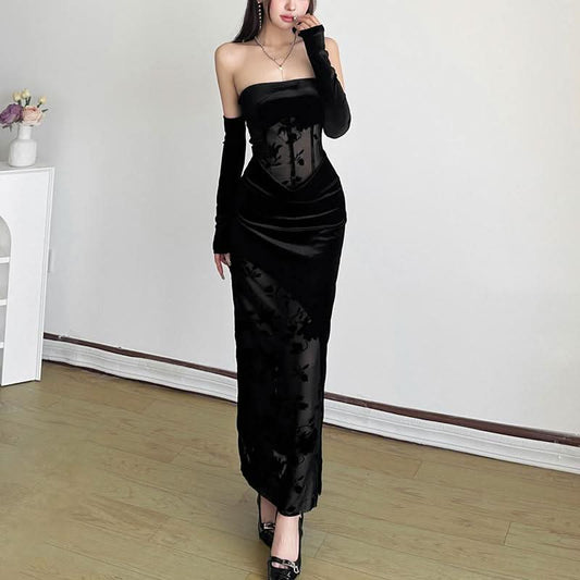 Gloves solid off shoulder hollow out long sleeve cut out top
