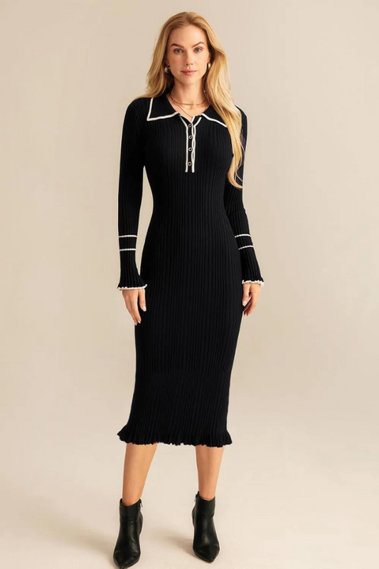 Grace Turtleneck Solid Color Knitted Sweater Dress-Black