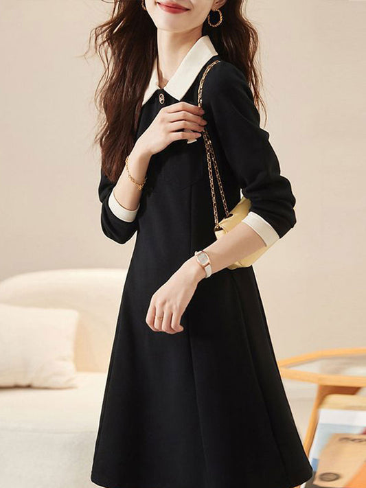 Grace Vintage Doll Collar Waist Solid Color Dress