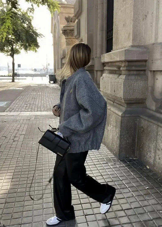 Gray - Loose Mid-Length Lapel Two Piece Set