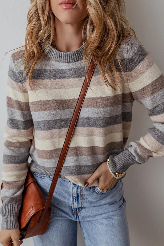Gray Stripe Long Sleeve Wide Office Two Piece Set