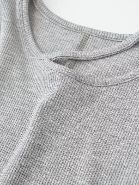 Gray Crisscross Cut-out Back Knit Tank Petal Dress