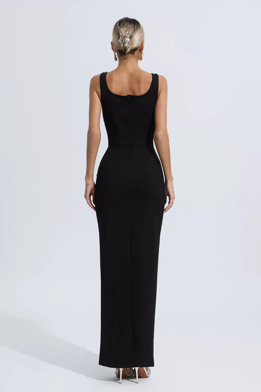 Gunnar Off Shoulder Asymmetric Ruched Maxi Dress - Black