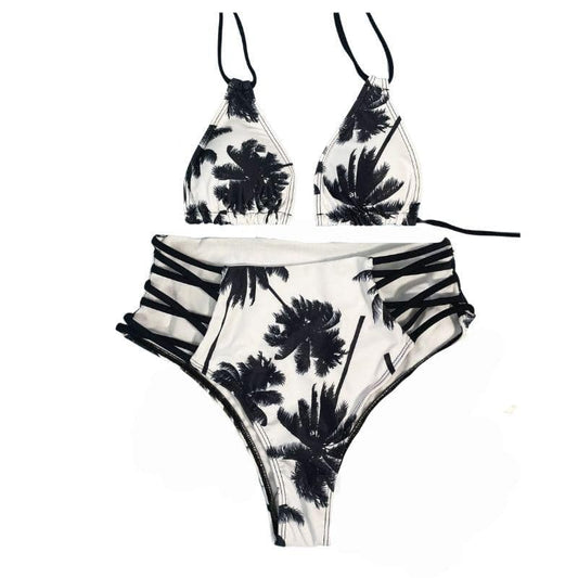 Halter contrast flower pattern self tie padded 3 piece swimwear
