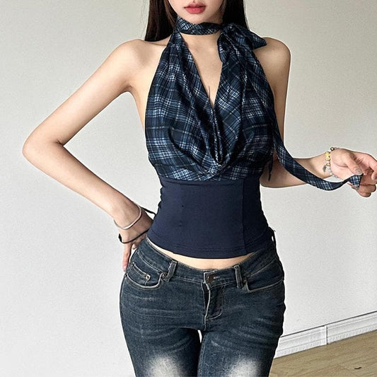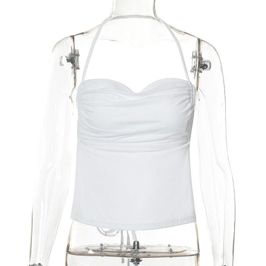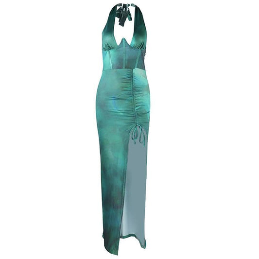 Halter corset deep v neck drawstring ruched slit maxi dress