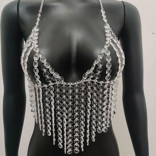 Halter crystal tassels beaded hollow out cut out top