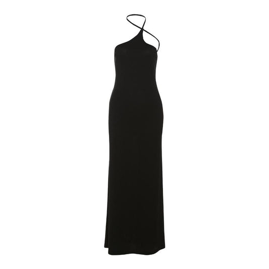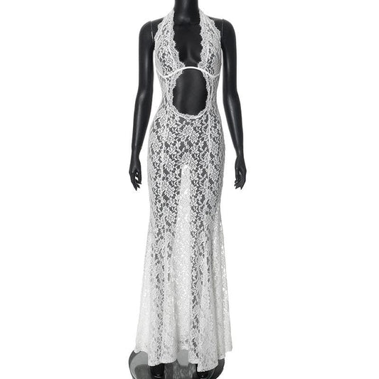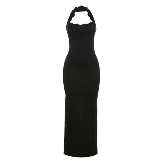 Halter hollow out backless high slit cut out maxi dress-final-sale