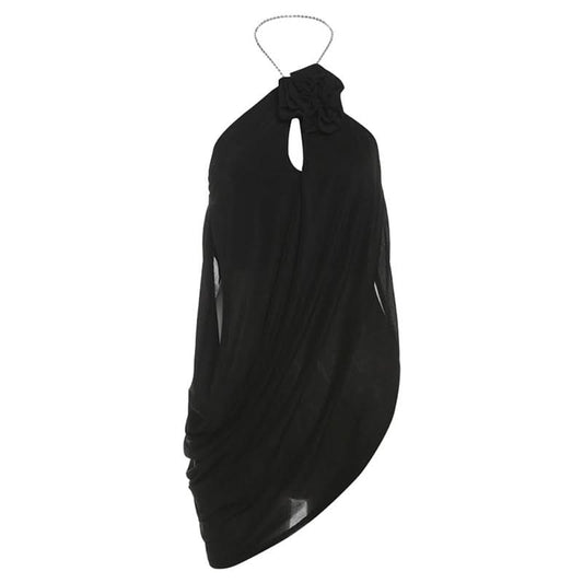 Halter hollow out fluffy ruched self tie cut out mini dress