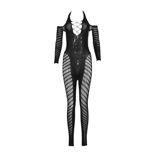 Halter low cut hollow out see through backless jumpsuit-final-sale