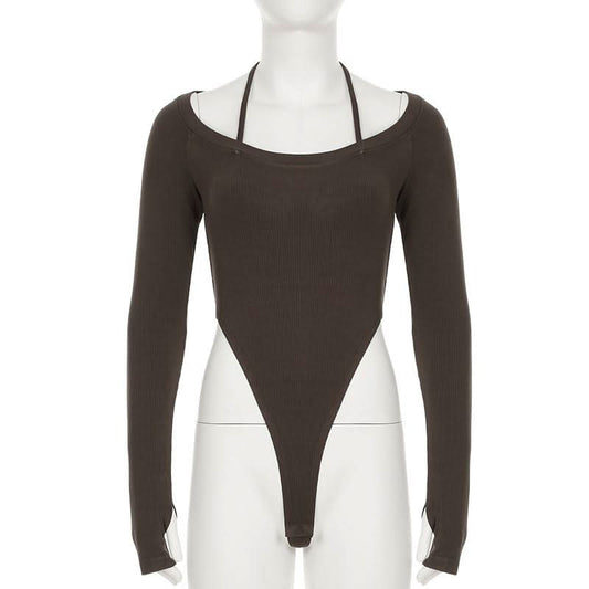 Halter long sleeve off shoulder hollow out cut out maxi dress