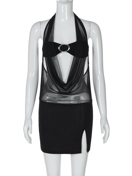 Halter Low Cut Backless Slim Fit Sheath Dress