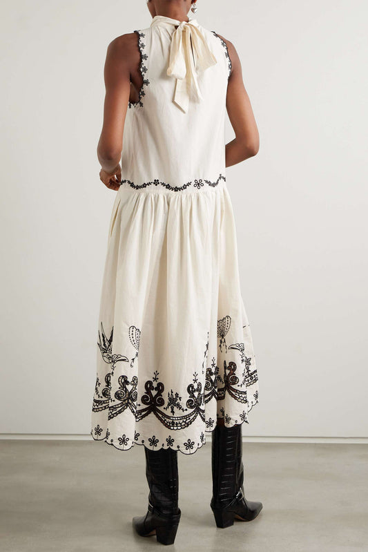 Halter Neck Embroidery Sleeveless Midi Dress