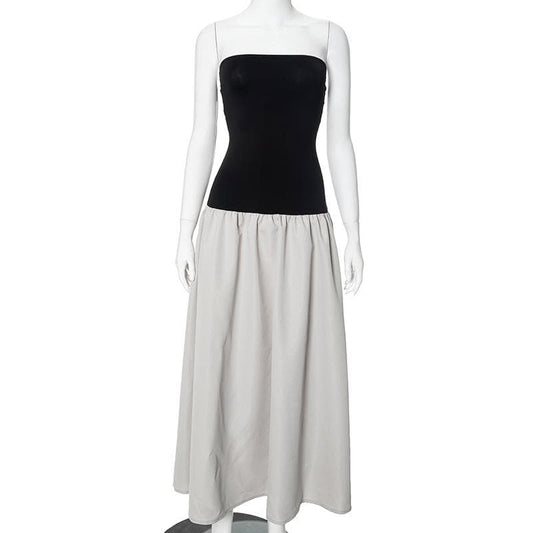 Backless cowl neck v neck contrast print cami maxi dress-final-sale