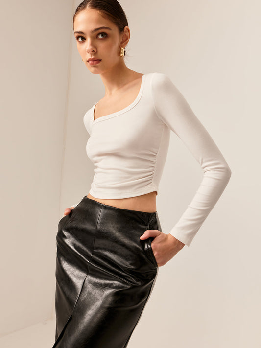 Backless Pleated Bow Crop T-Shirt