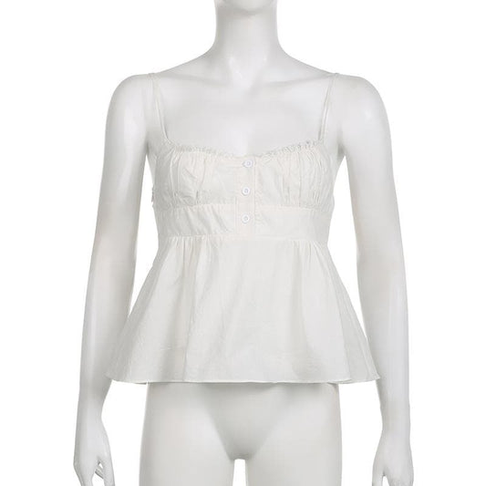 Backless ruched zip-up button lace hem solid cami top