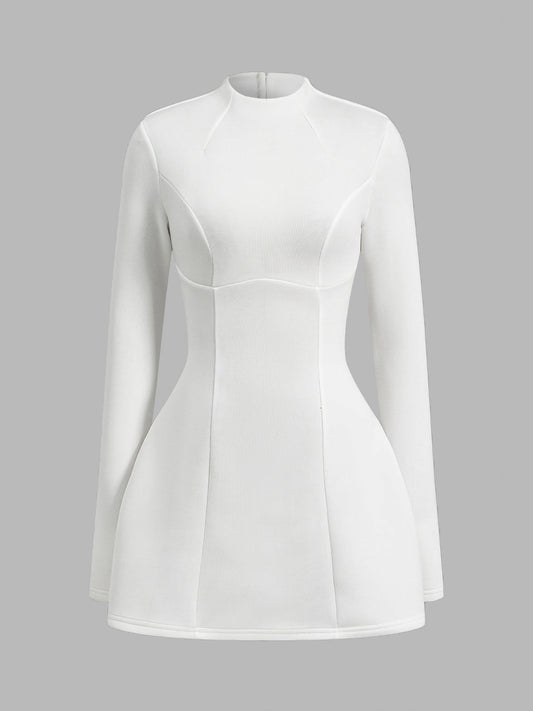 Backless solid long sleeve lace up ribbed square neck jumpsuit