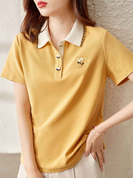 Bailey Casual Polo Neck Embroidered Contrasted Top