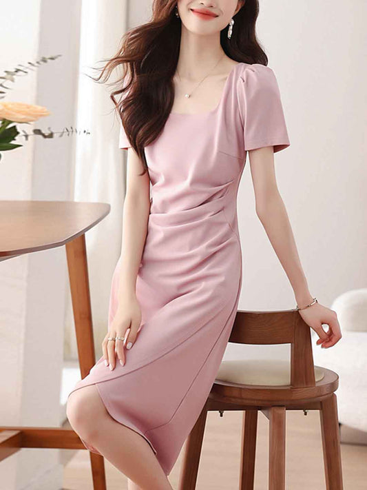 Bahamas Unique Print Dolman Long Sleeve Ruched Slit Midi Dress