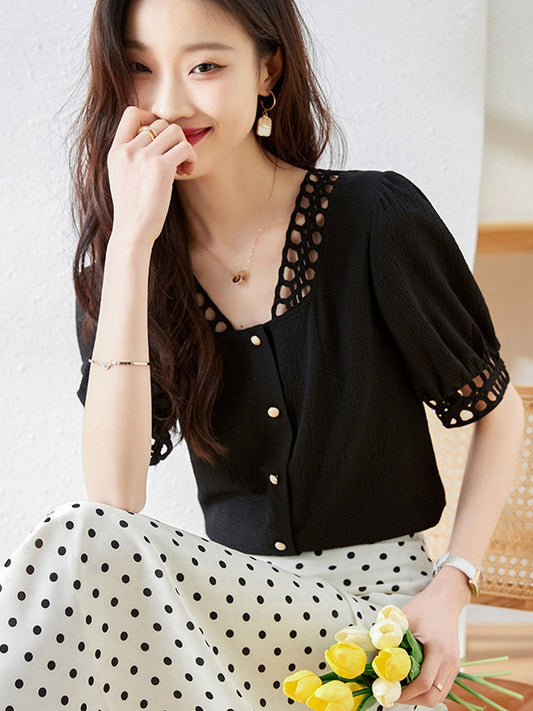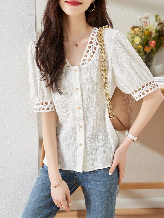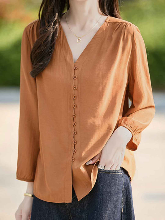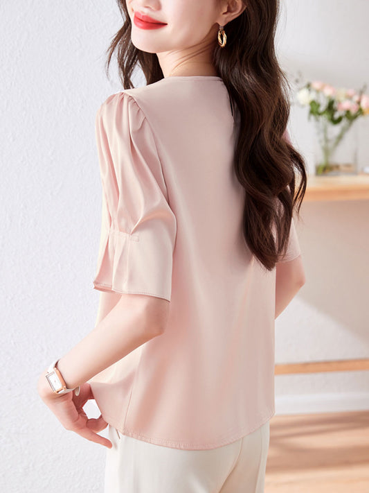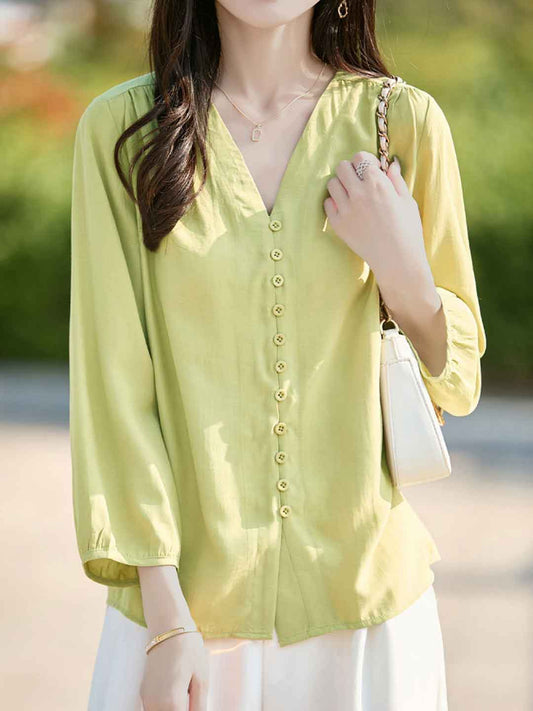 Bailey Classic V-Neck Solid Color Chiffon Shirt