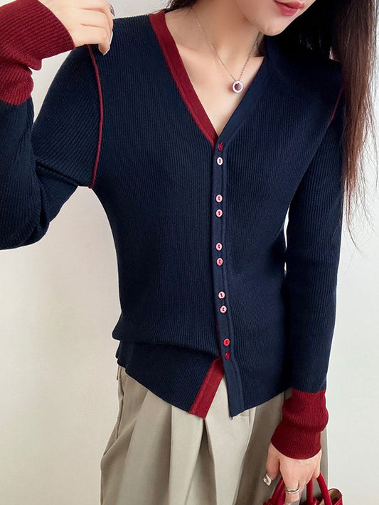 Bailey Classic V-Neck Colorblock Knitted Cardigan