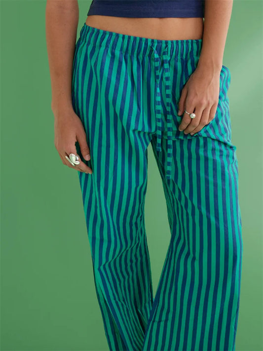 Baggy Striped Drawstring Wide Leg Summer Pant