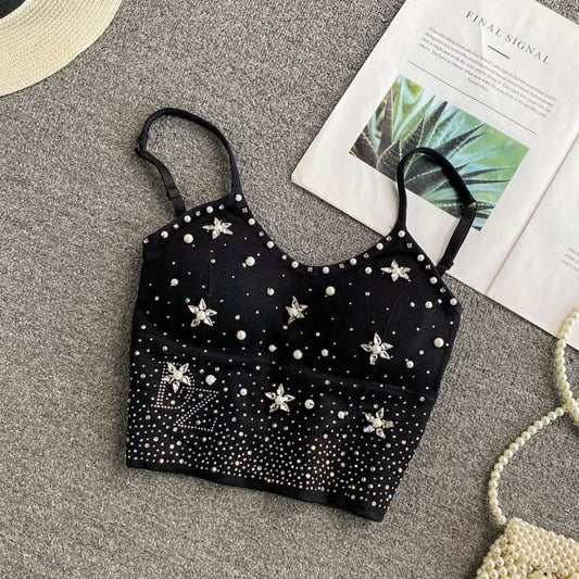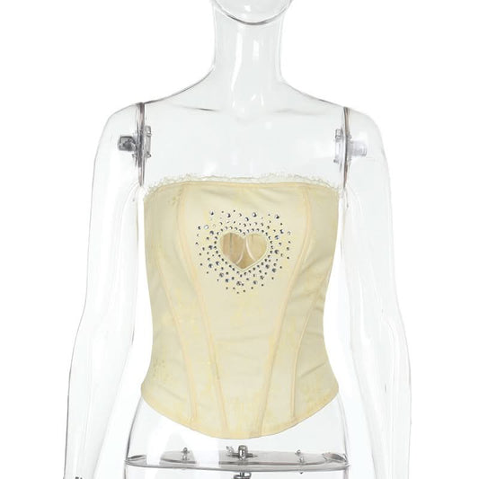 Beaded sweetheart pattern hollow out bustier tube cut out top