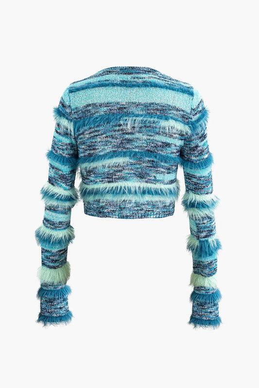 Berlin Blue Feather Stripe Long Sleeve Knit Cardigan