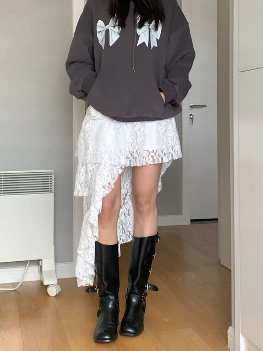 HEYounGIRL Y2K Aesthetic Lace Tiered Irregular Skirt Mori Girl
