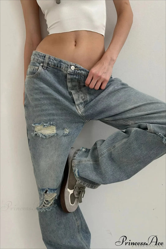 Distressed Raw Hem Waist Loose Jean