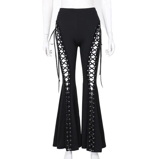 Lace up hollow out ribbon high rise pant