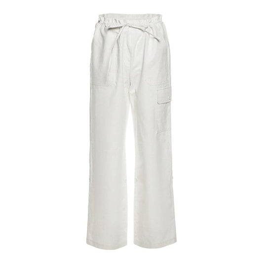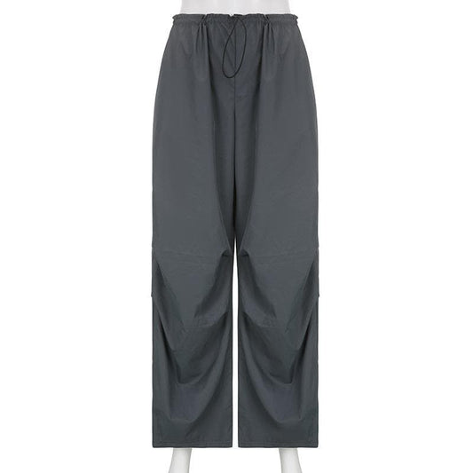 High rise solid drawstring pocket wide leg cargo pant