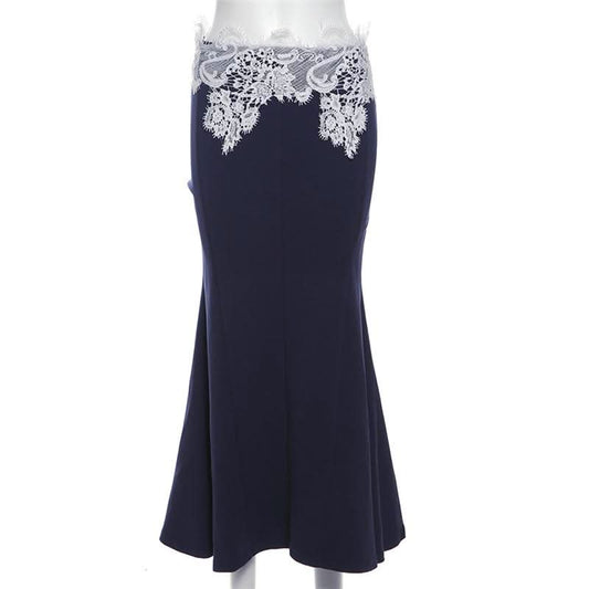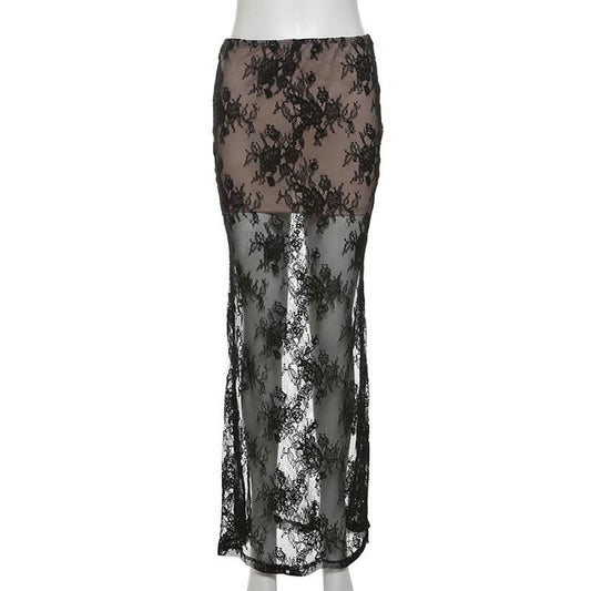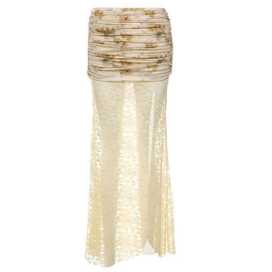 Lace mesh patchwork maxi skirt