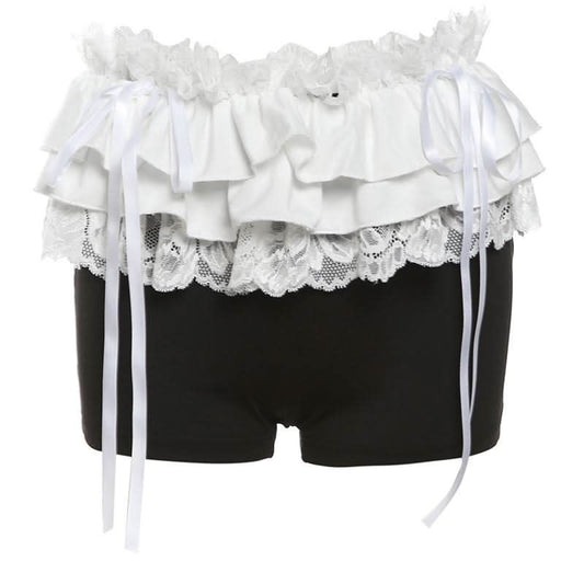 Lace hem ruched bowknot ribbon short pant
