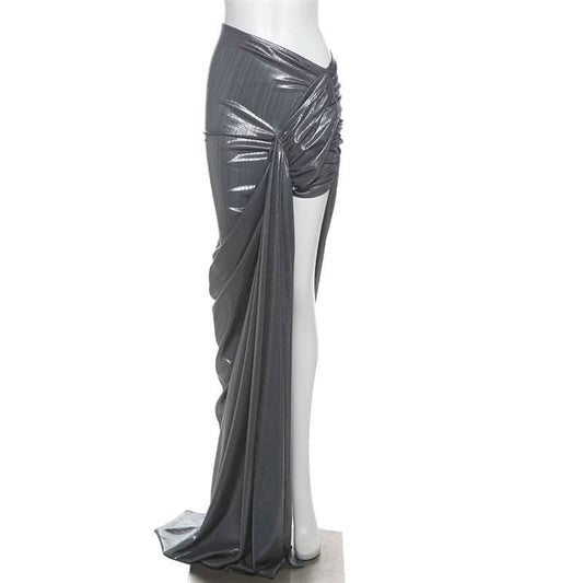 Metallic slit ruched maxi skirt