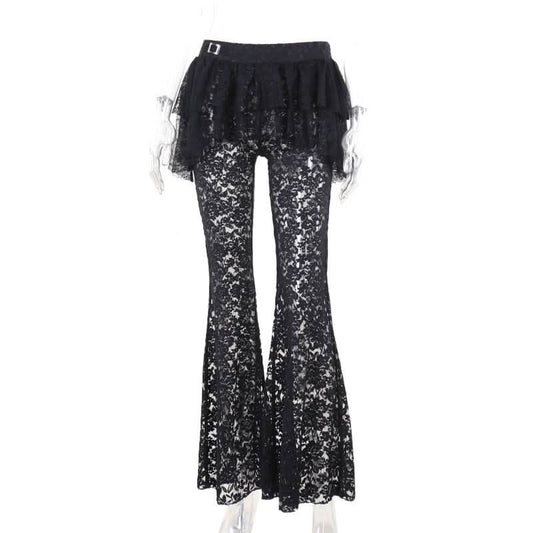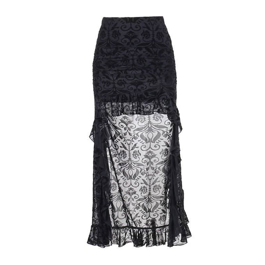 Irregular bowknot ribbon ruched lace solid midi skirt