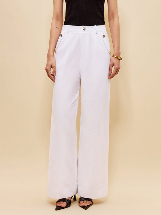 Linen & Cotton Pockets Mid-Waist Pants