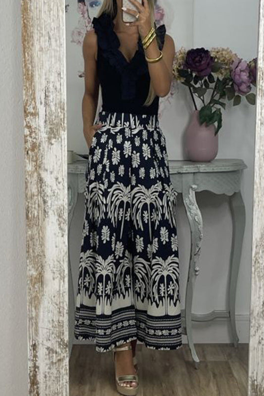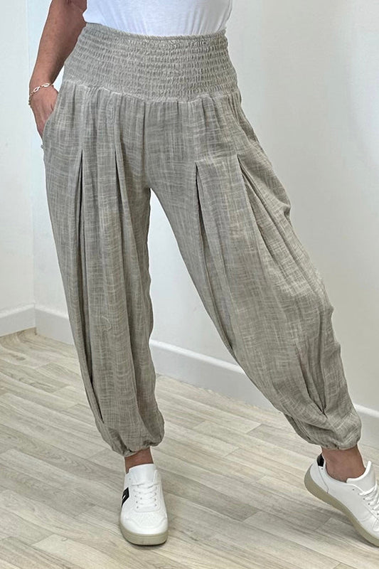 Smocked Elastic Waist Wide Leg Cotton Linen Pants