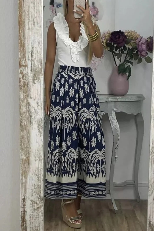 Unique Print Loose Pocket Holiday Maxi Skirt