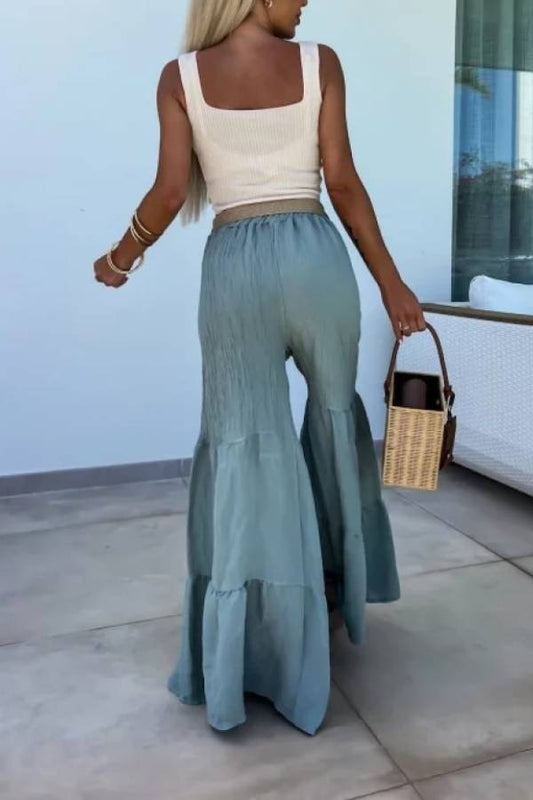 Bond Velvet High Rise Elastic Waist Stretch Flare Pants