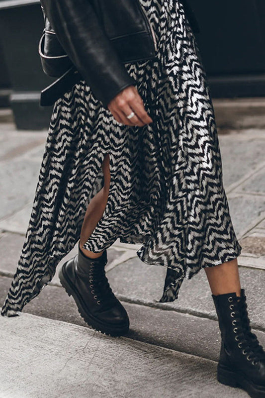 Elegant Print Slit Regular High Waist Type A Full Print Bottoms