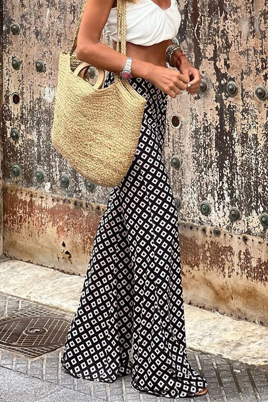 Casual Vacation Print Patchwork Loose High Waist Wide Leg Full Print Bottoms