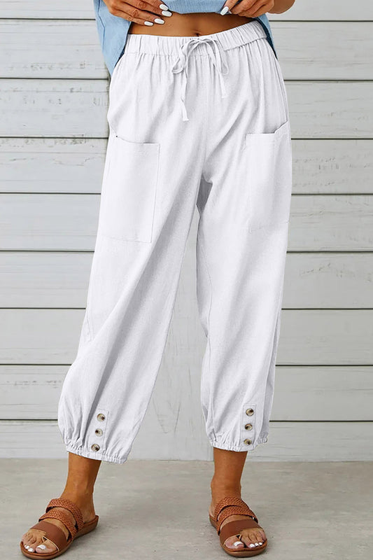 Casual Solid Draw String Loose Mid Waist Straight Solid Color Bottoms