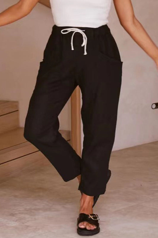 Casual Street Solid Draw String Straight Low Waist Wide Leg Solid Color Bottoms(4 Colors)