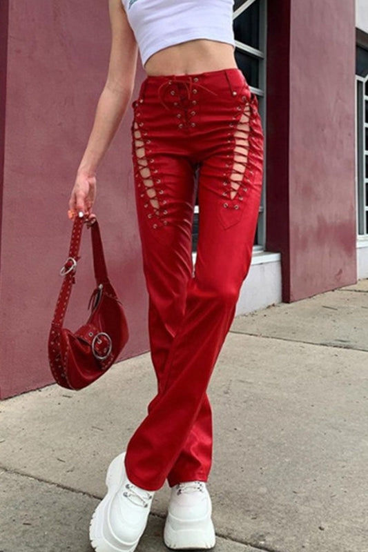 Casual Street Solid Lace Patchwork Straight Mid Waist Harlan Patchwork Bottoms