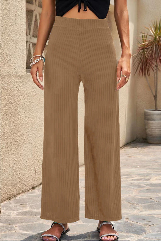 Casual Solid Frenulum Loose High Waist Straight Solid Color Bottoms(6 Colors)